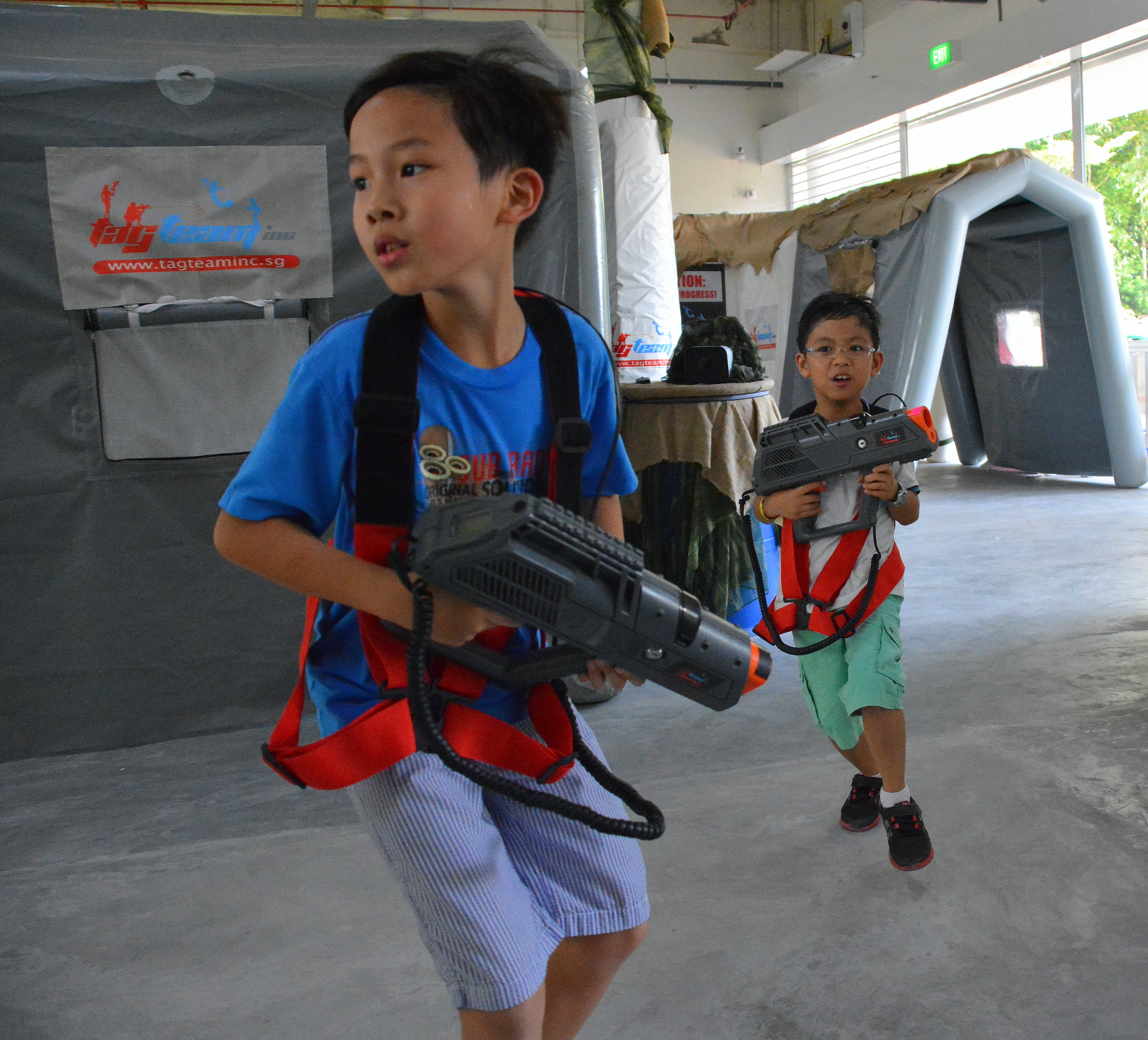 There is another room called the Mystery Room, which is air-conditioned and smaller. Although the Battle Zone is NOT air-conditioned, I would recommend kids from 7 years and up, to have their parties here. The reason being is that the Battle Zone has got bigger and better guns, and secondly, the older kids will love the extra space.