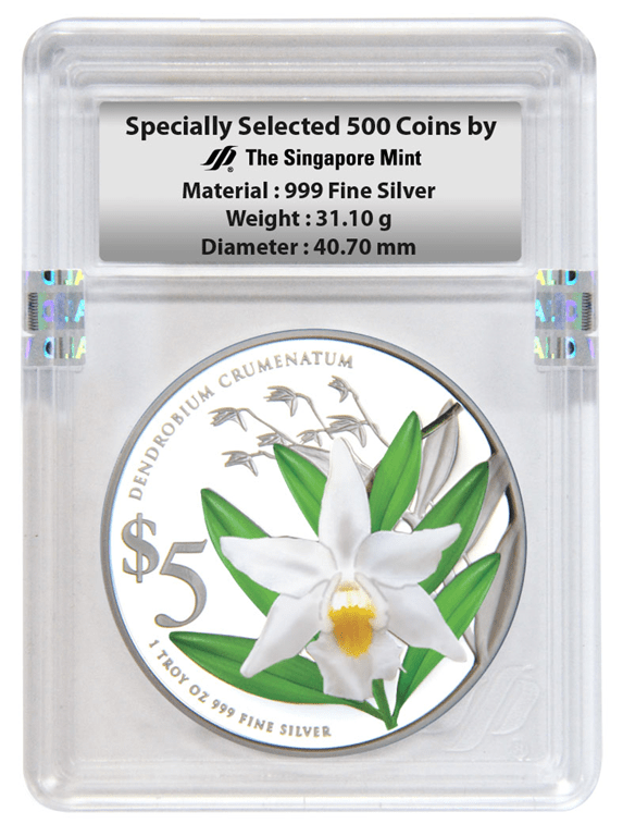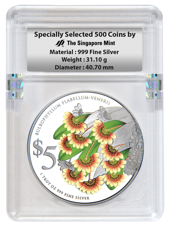 Similar to the design concept of the earlier issues, the 1oz 999 Fine Silver Proof colour coins are partially rimless towards the right of the coin, further accentuating the splendour of the beautiful blooms in a three-dimensional effect. The iconic design is a hallmark of The Singapore Mint’s excellent craftsmanship and was introduced in the inaugural issue in 2011.
